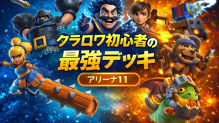 【アリーナ11攻略】クラロワ初心者が勝つための最強デッキと立ち回りを動画付きで解説!カードのレベル上げ順や新カードの使い方も網羅。手札把握を意識した攻めで、アリーナを効率よく突破しましょう。