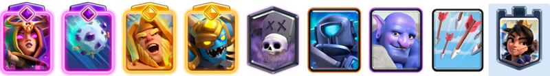 ジャイアントを盾にし、「スケルトンラッシュ」をタワーへ直撃させるのが主な得点パターン。