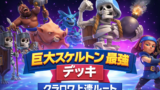限界突破バルキリーの引き寄せと、墓石・スケルトンを組み合わせた地上防衛は盤石。メガゴで大型を処理しつつ、守ったバルキリーを盾にカウンターを仕掛けることで、常に有利なペースを維持。相手の主力ユニットを完封し、逆転の芽を摘み取ることが可能です。