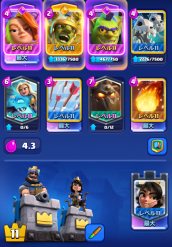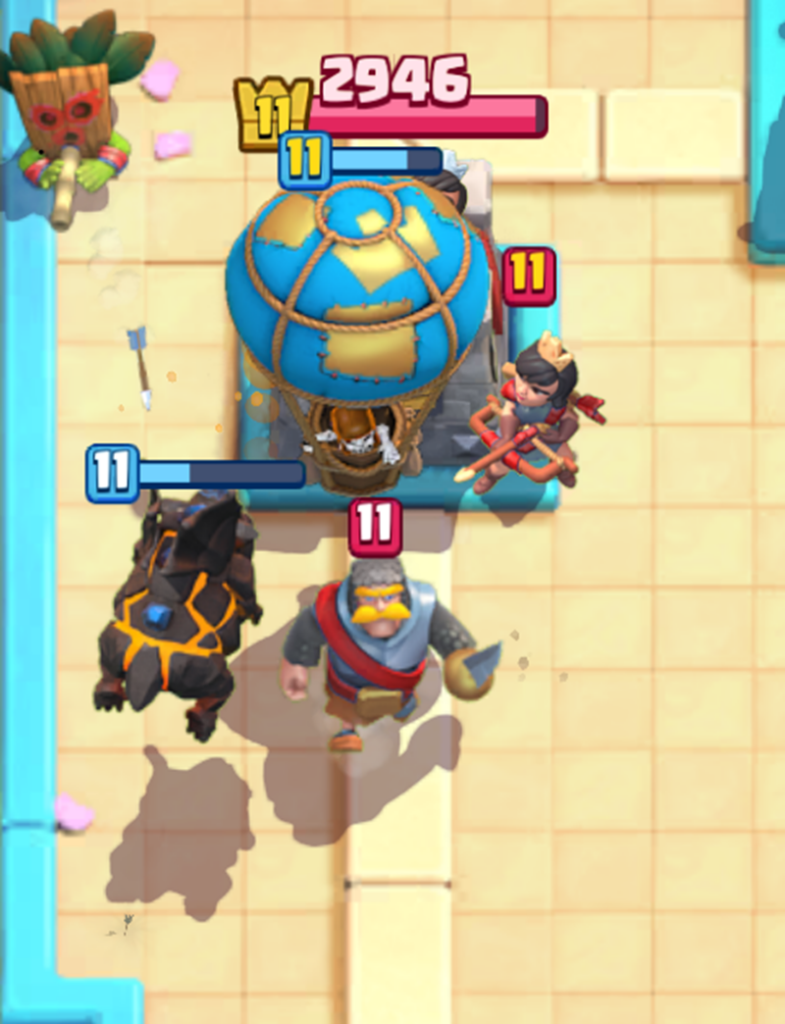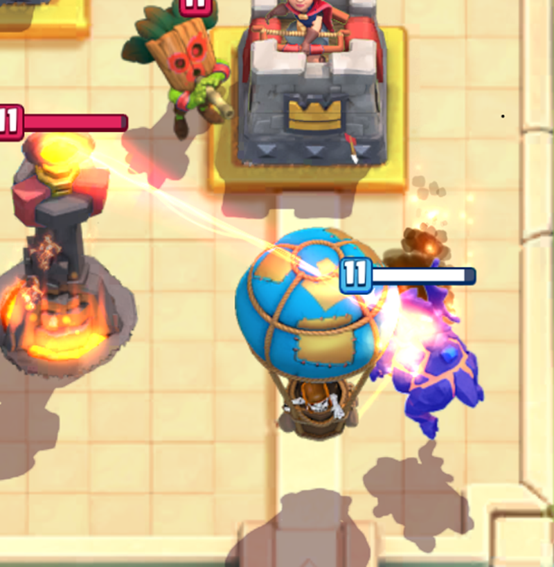 ラヴァを盾にバルーンを通す伝統的な攻めに、進化インドラの火力を添えるのが強力です。ザップでインフェルノ系をリセットしつつ、対空ユニットをファイボで削り、バルーンの一撃をタワーへ確実に通す高火力な空攻めが基本です。