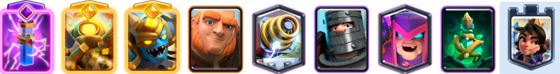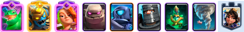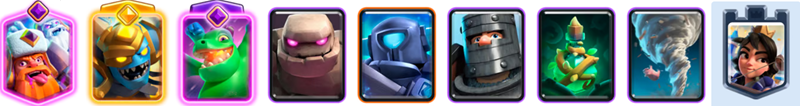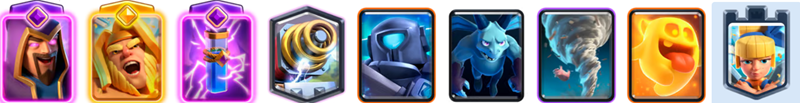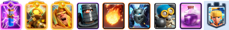 ジャイアントを盾にスパーキーの圧倒的火力を通す王道ビートダウン。限界突破ウィザードで受けを崩し、一撃で戦況を覆すのが強み。隙を突けばそのまま3クラウンまで奪える爆発力が魅力です。