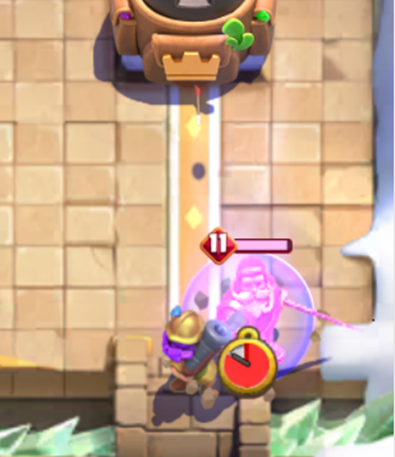 防衛の要は、限界突破大砲の誘導と限界突破マスケット銃士の長射程を活かしたダメージコントロールです。スケルトンやヒーローアイスゴーレムを使って相手ユニットを中央に集め「お散歩」させつつ、安全な位置からマスケで処理します。防衛で生き残ったマスケの前にホグやアイゴレを追加し、相手の隙を突く鋭いカウンターへと繋げるのが理想です。