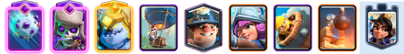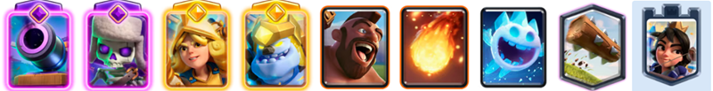 「ヒーローアイスゴーレム」の死亡時遅延や「アイススピリット」のフリーズ効果など、低コストカードの繊細なシナジーが最大の武器です。マスケット銃士を中心に陣形を組み、軽量カードでターゲットを逸らしながら防衛をサポートします。素早い手札回しで限界突破カードやヒーローの強力な特性を何度も発動させ、試合の主導権を常に握り続けましょう。