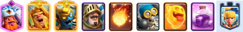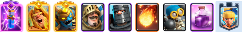 ジャイアントを盾に、プリンスと限界突破ランバーでタワーを強襲。ランバーの死後レイジと手札のレイジを重ねることで超高速の進撃を実現します。相手の防衛を力業でねじ伏せ、一気に三冠を狙う圧倒的な爆発力が最大の魅力です。