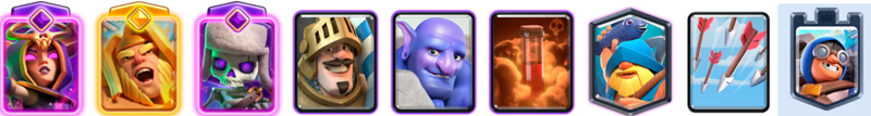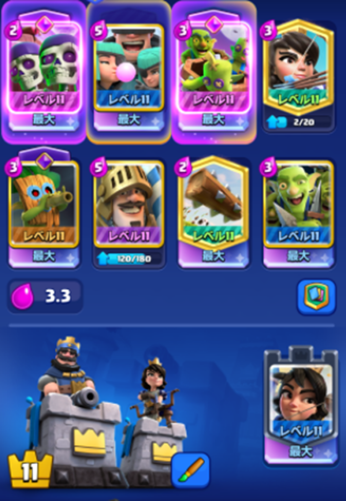 巨人を盾にプリンスの高火力を叩き込み、進化ネクロのスケルトンとレイジで一気に押し切ります。進化マスケの長射程を活かして防衛ユニットを削りつつ、物量とパワーでタワーを強引に落とす、破壊力抜群の攻撃が要です。