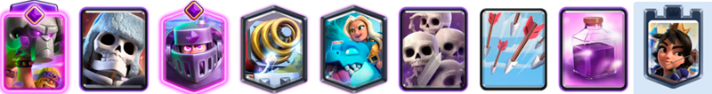 レイジでスパーキーや攻城バーバリアンを加速し、矢の雨で天敵を処理します。スケルトンでターゲットを逸らし、主力を通し切るのが強みで、呪文のタイミングが勝負を分けます。