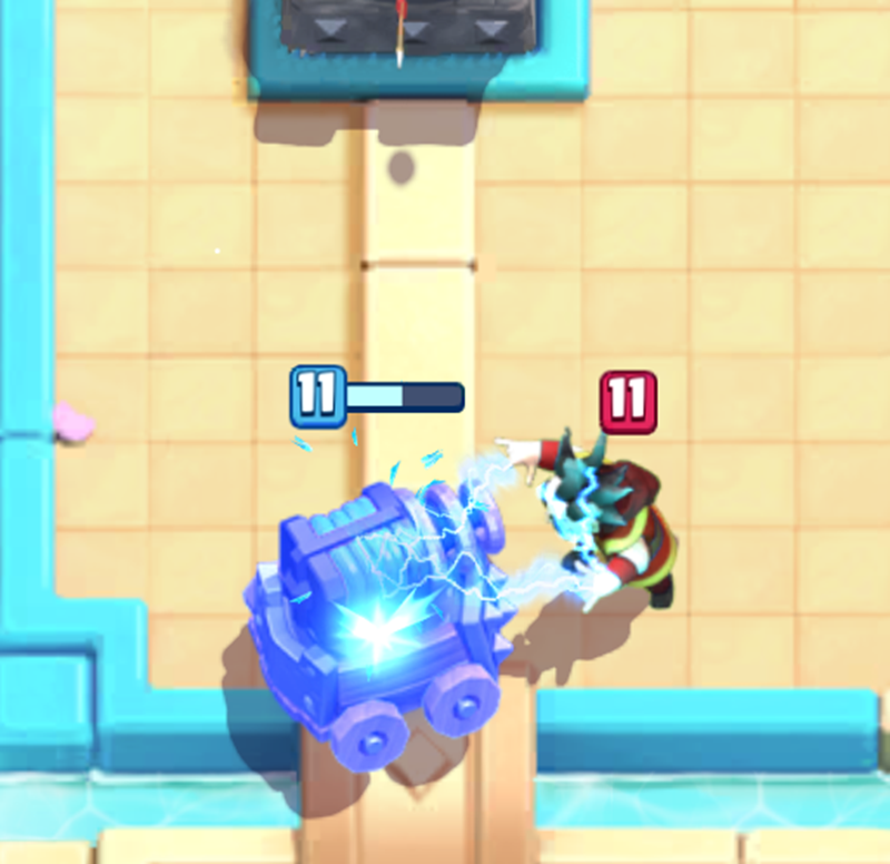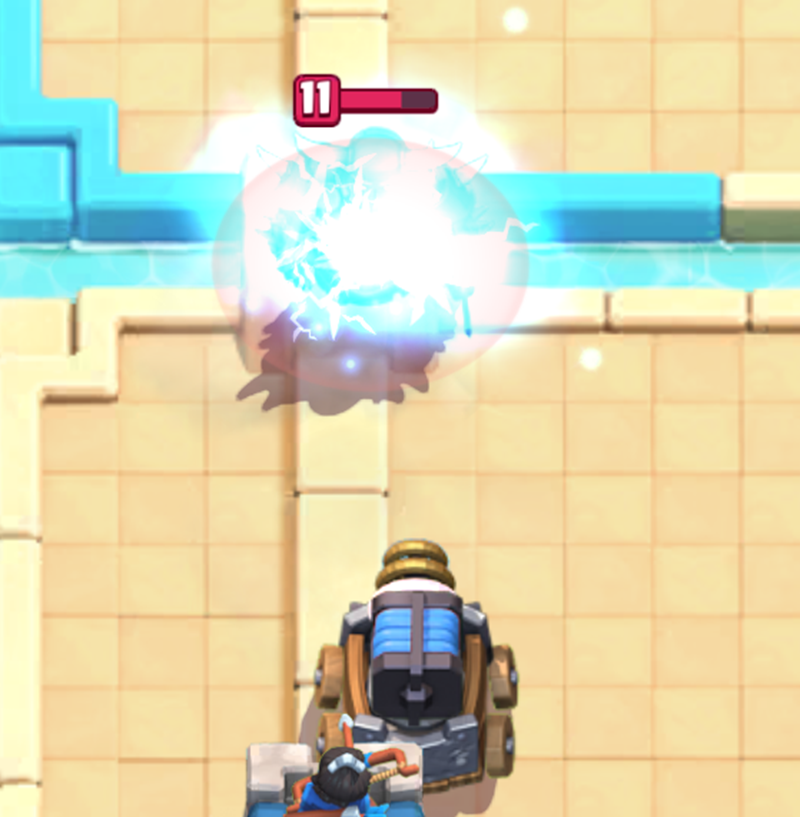 一撃のダメージはクラロワ随一を誇るが、エレキやザップなど、チャージを妨害・リセットするカードには非常に弱い。