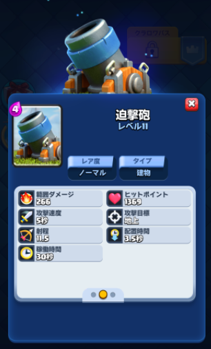 小範囲に大ダメージを与えます。見ているだけで壮観ですよ!ただし、クラウンタワーに対してはダメージが減少します。