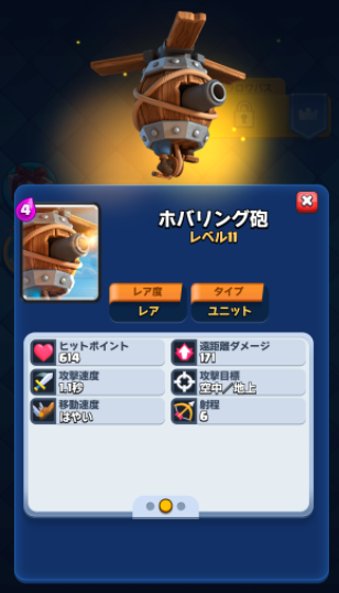 ホバリングです。このカードは射程がしっかりとあり、4コストらしい安定した火力を出せるのが大きな強みです。遠距離から攻撃ができる利点があります。