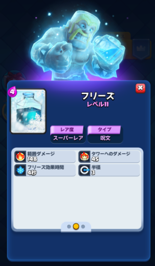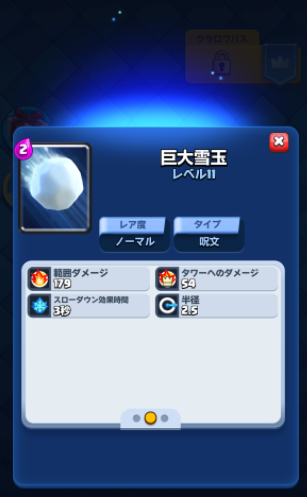 なんとも巨大です!フローズンピークの峰から転がり始めたら、もう誰にも止められません。ぶつかった敵は押し戻され、スロー状態になります。なお、クラウンタワーに対してはダメージが減少します。